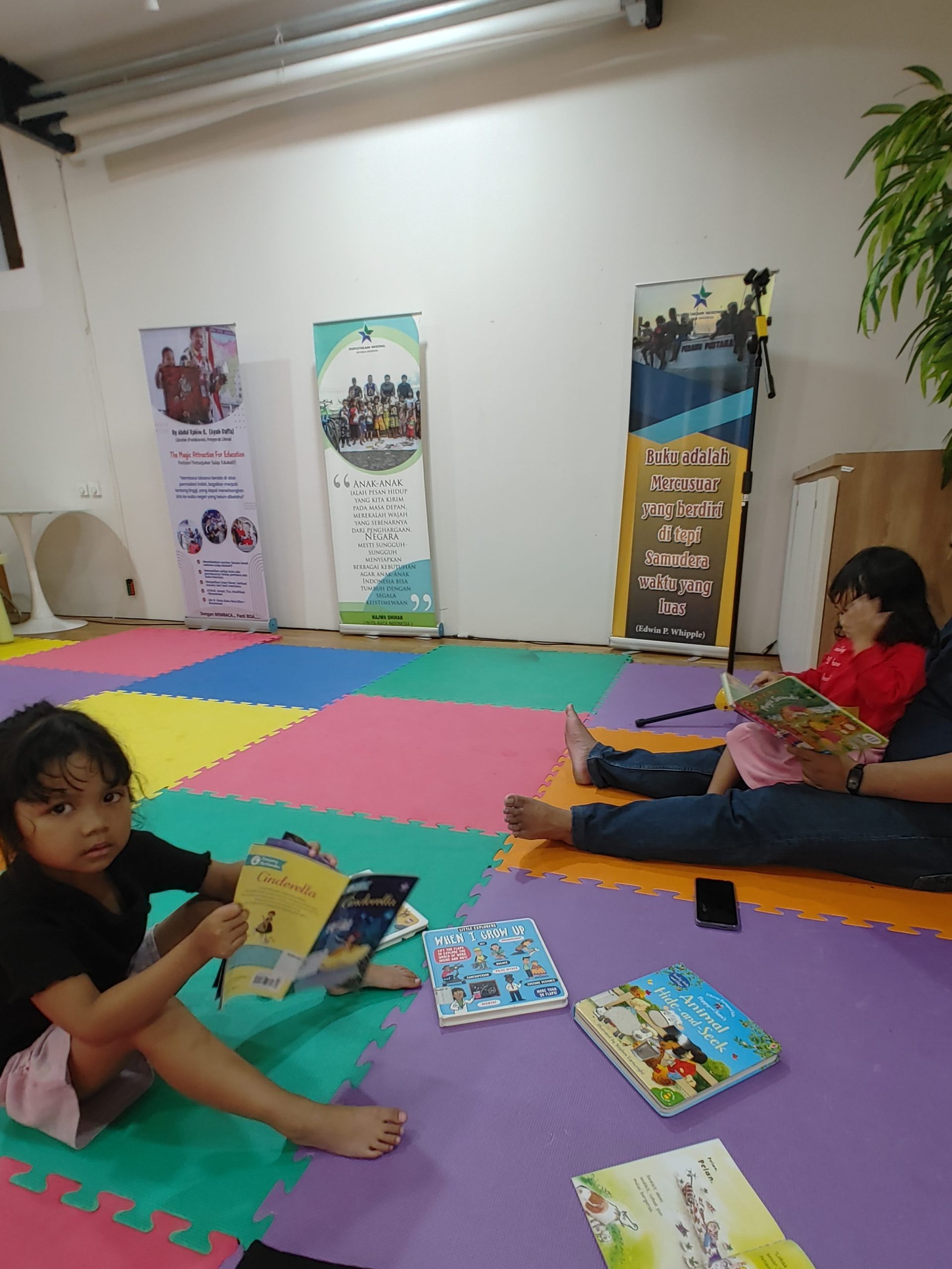 Anak-anak bisa mengambil buku yang mau mereka baca, atau meminta saya membacakan buku-buku tertentu (mereka sudah tentukan bukunya), dan sudah bisa menceritakan ulang versi mereka sendiri.