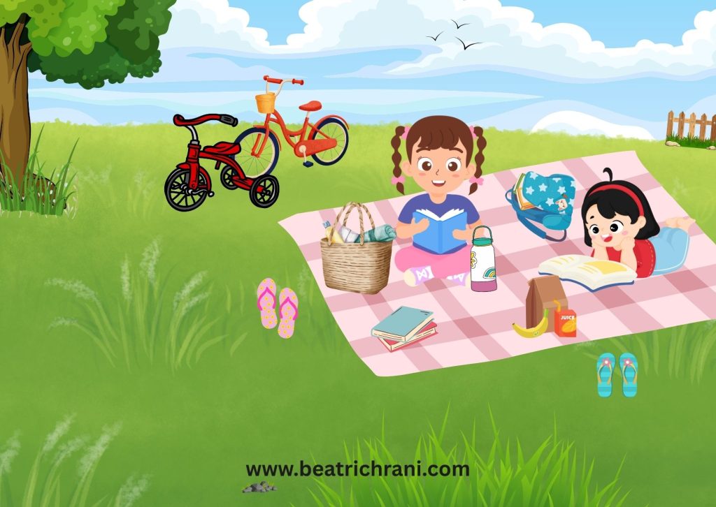 Kalau anak belum bisa membaca, biasanya mereka akan menceritakan dengan kalimat sederhana atau hanya menyebutkan gambar-gambar yang terlihat. Ga masalah, perlahan, mereka akan belajar memahami konteks cerita dan menyusun kalimat dengan baik.
